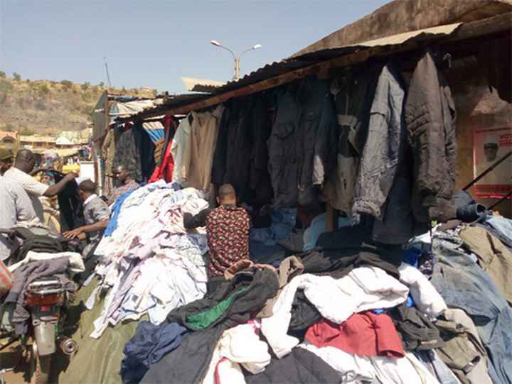 << Comme nous sommes en saison froide, ce sont les habits longs qui sont les plus recherchés : chemises et pantalons. Ce sont les articles que nous vendons en ce moment. Il n’y a pas beaucoup de marché actuellement ; dans la journée, nous pouvons gagner 25 000 F ou 30 000 F. >> martèle Aboubacar Sidiki Keïta, vendeur de friperie.